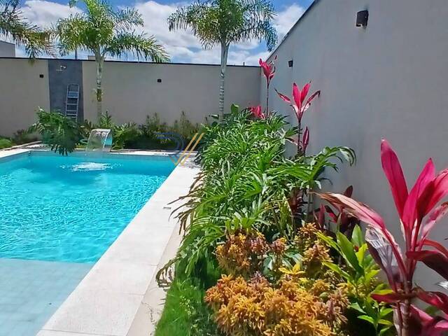 Possui Escritório com vista externa, despensa, lavanderia, lavabo, área gourmet com ilha de quartzo, piscina 8X4, quintal gramado, paisagismo e complementando com acabamento de Travertino Rock importado hobby box.